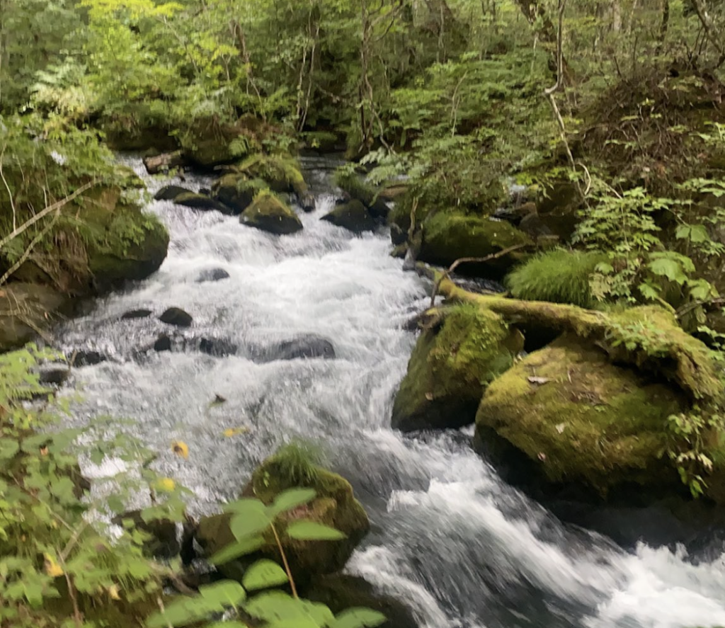 緑の中、土の上、水の音。心地よい時間でした🩵